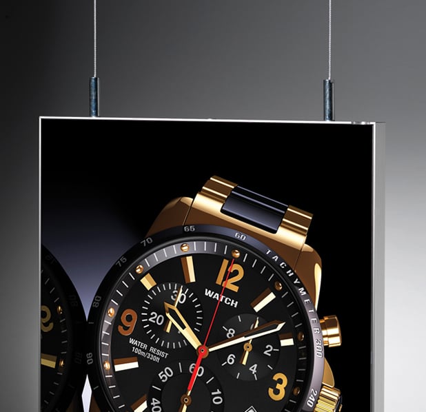 Magnetic hooks - high pull strength, small in size, facilitate quick changes of promotional media or signage.