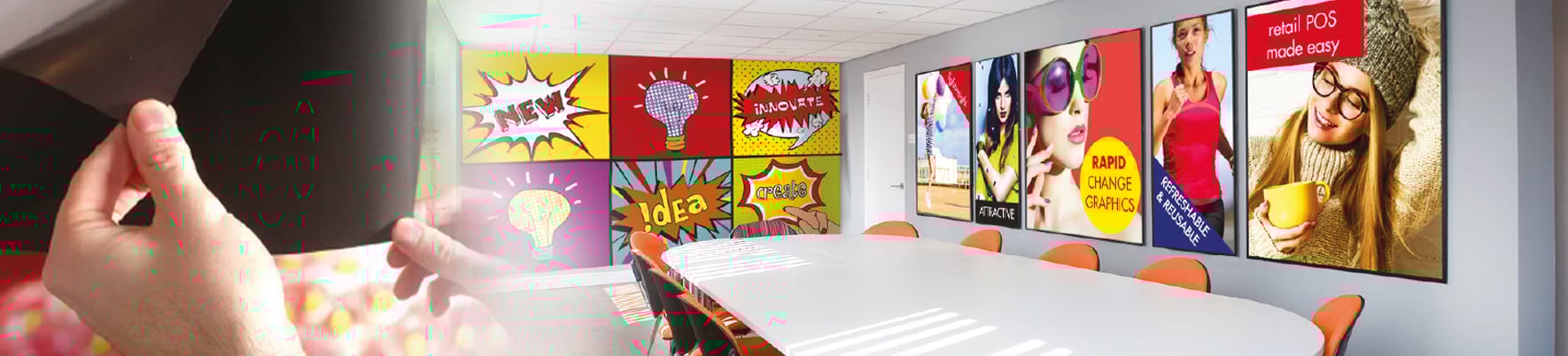 We've designed and created a number of products that are suited to use in the office or home environments, including our magnetic heat saver warmroom®, organisational magnets, replaceable signage and ways to refresh office spaces.