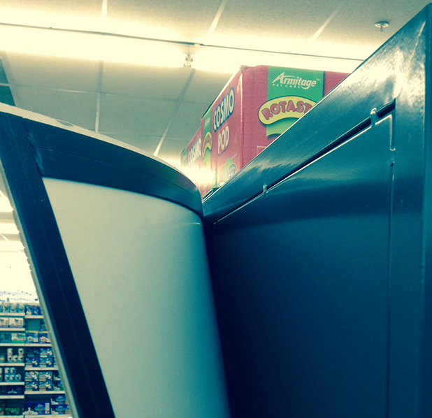 By using adhesive-backed supaferro® ferrous sheet on the space in question, you create a display system that attracts magnetic sheet. Printed supamag® magnetic sheet can then be applied to the ferrous sheet, creating a graphical display that can be replaced as desired.