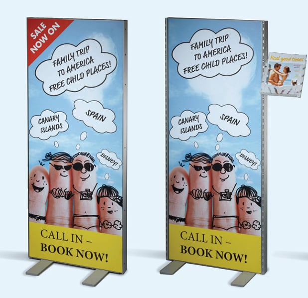 Our ATTRACT® free-standing or hanging magnetic display system utilises an internal magnetic surface to hold layerable graphics. Because the graphics are layerable the display can be updated instantly with additional images or messages as required.